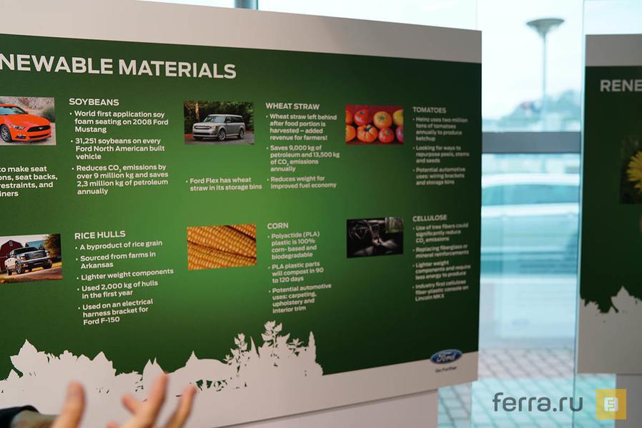 Еще 10 лет назад сама идея «алюминиевого пикапа» звучала бы смешно, но сегодня компания имеет дело с такими сплавами, которые превосходят по прочности традиционную сталь. Впрочем, Ford F-150 примечателен не только этим. В его производстве активно используется переработанный пластик. Например, сиденья целиком сделаны из материалов, полученных при переработке пластиковых бутылок. Аналогичный подход применяется и к элементам салона легковых машин, правда, все новшества внедряются с большой осторожностью, чтобы не отпугивать клиентов.